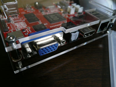 他には3.5 HDD用に12V端子、VGA端子、光オーディオ出力が追加。Flashが8GBに増えたなどもありますが、
