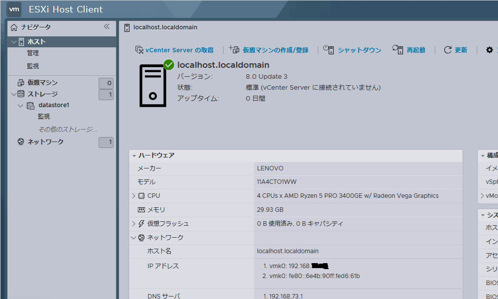 ESXi 8.0 Update 3eだったか、無償版も復活したので、重すぎる腰を上げました。