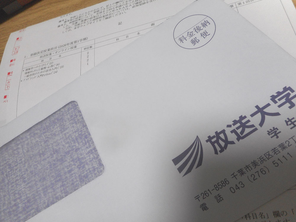 01/28(水) 2026年前期の科目登録申請書類一式送られてくる