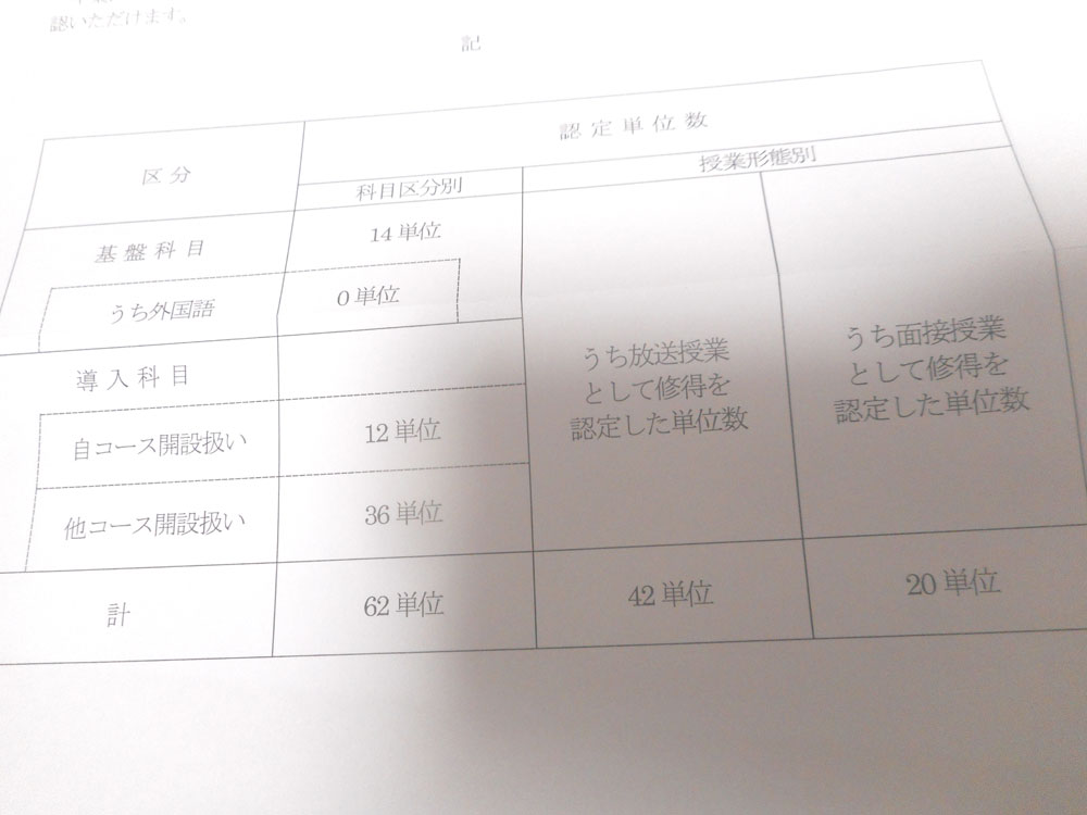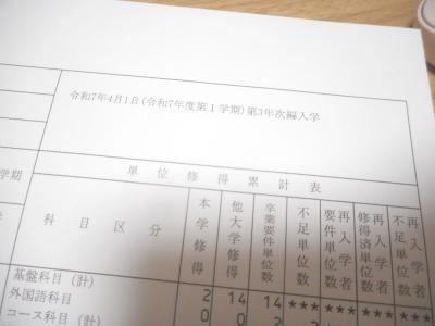 06/24(火) 編入学での既修得単位認定審査の結果 (ここでやっと専門学校時代の分62単位が認定される)