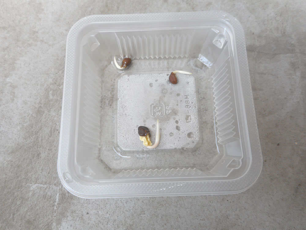 種を水に付けて発根を促します。